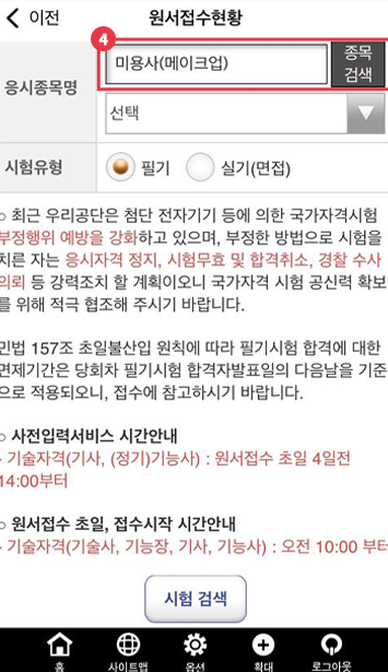 ‘시험검색’ 클릭해 회차 확인